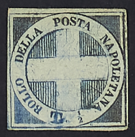 1860 - "Croce" 1/2 t. azzurro - Molto raro - Cert. Bolaffi e Diena - Firma Raybaudi