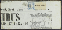 1860 - "Croce" 1/2 t. azzurro su giornale "L'Omnibus" del 17 gennaio 1861 - Splendido e molto vivo nel colore