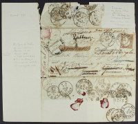 1854/62 - Peregrinazioni postali - Cinque lettere affrancate con esemplari di Sardegna e Province Napoletane di cui quattro con numerose rispedizioni e bolli di transito - Timbro Bolaffi - Firma A.D.