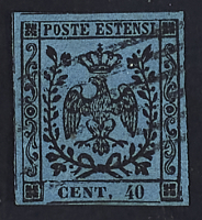 1852 - 40 c. azzurro scuro su lettera del 25 ottobre 1855 da Sassuolo per Strasissa (Illiria) - Destinazione rara