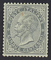 1863 - Definitiva 5 c. grigio verde tiratura di Londra - Molto fresco e ottimamente centrato - Cert. Bolaffi e Diena