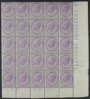 1863 - Definitiva 60 c. lilla tiratura di Torino blocco di venticinque esemplari angolo di foglio inferiore destro - Timbro Bolaffi