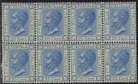 1867 - Nuovo formato 20 c. azzurro blocco orizzontale di otto esemplari e blocco irregolare di sette esemplari - Alcuni piccoli difetti da esaminare ma esemplari di notevole freschezza
