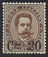1891 - Umberto non emessi 2 c. bruno + 20 c. arancio + 25 azzurro - Rari