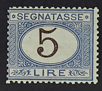 1874 - Cifra bruna 5 L. - Cert. Sorani - Firma Raybaudi