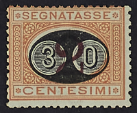 1874 - Cifra bruna 10 L. con cifra capovolta e leggermente spostata - Cert. Raybaudi