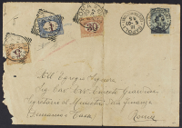 1890 - Definitiva 1 L. azzurro e carminio non dentellato con valori completamente su busta del 18 maggio 1907 da Napoli per Roma affrancata in partenza per 15 c. - Non comune - Da esaminare - Cert. Sorani - Firme E. Diena e A.D.