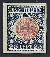 1921 - Annessione Venezia Giulia 25 c. non dentellato - Non dentellato e probabile unico noto - Cert. Diena