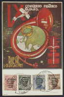 1922 - Congresso filatelico - La serie su cartolina ricordo annullata in 9 giugno - Cert. Bolaffi