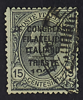 1922/23 - Congresso filatelico 15 c. con soprastampa parzialmente mancante di "1922" usato - Cert. Diena - Unito Michetti soprastampato 50 c. / 40 c. non dentellato a destra coppia verticale nuova