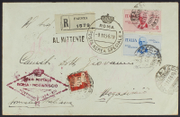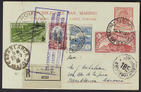 1933 - Roma - Buenos Aires 3/2 L. con affrancatura complementare di San Marino cu raccomandata aerea del 25 gennaio per Casablanca - Rara
