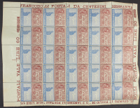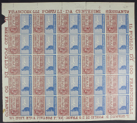 1925 - Non emesso 60 c. Perugina - Cinque fogli singoli da 25 esemplari (di cui una con dentellatura lineare 13 3/4 x 13 3/4) e due fogli doppi da 50 esemplari - Un cert. Carraro