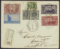 1922/23 - Prima emissione 20 c. e 40 c. + seconda emissione 10 c. con valori complementari su raccomandata del 26 gennaio 1924 da Bologna per Roma - Rara - Cert. Raybaudi - Firma Caffaz