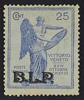 1922 - Vittoria - Non emessi - La serie con il 5 c. con soprastampa parzialmente evanescente e il 25 c. con varietà virgola invece di punto dopo "p" - Rara - Cert. Colla