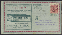 1928 - Ricevuta di ritorno - Cartolina illustrata affrancata con Brasile 200 r. del 17 gennaio da Santos per Roma - Cartolina di ritorno stampata al verso di busta lettera postale per dimostrare al mittente il ricevimento della lettera - Unica finora nota proveniente read all