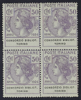 1924 - Consorzio Bibliot. Torino - La serie in blocchi di quattro - Cert. Cilio