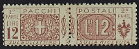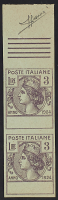 1924 - 3 L. - Prova d'archivio senza indicazione dell'ente in coppia verticale bordo di foglio superiore - Firma Sorani