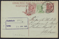 1918/22 - Cartolina postale 10 c. (risposta) con affrancatura complementare del 18 gennaio 1926 da Nola per Milano - Unita cartolina postale 40 c. su carta verde con valori complementari del 4 luglio 1924 da Bolzano per Magdeburgo