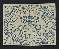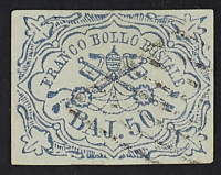 1852 - 50 baj. azzurro - Molto raro - Da esaminare - Cert. Diena