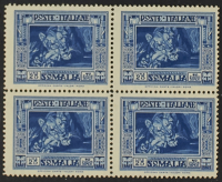 1938 - Pittorica II emissione 25 L. dent. 14 blocco di quattro - Raro - Da esaminare