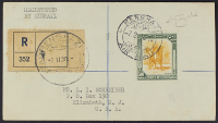 1950 - Prima emissione - I tre alti valori su altrettante raccomandate del 7 febbraio 1950 da Bengasi per gli Stati Uniti - Insieme raro - Cert. Raybaudi