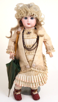 "Dep 1099", porcelain head with glass eyes, open mouth, composition body, original wig, original silk clothes. Made in Germany for the French market.