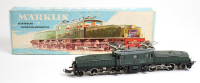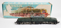 replicating the Swiss fast locomotive for light express trains. This model features a die-cast metal body, front corridor doors (typical of the first series), and heavy-duty pantographs. Classic version with "Märklin" lettering on the sides.