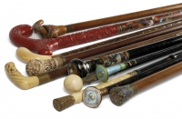 Of which six oriental and in chinoiserie, in different woods, bone, ivory, carved lacquer, mother of pearl, turtle, avventurina, cloisonné enamels, silver and gilt metal.