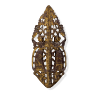 Carved and gilded wood, decorated with two female figures flanking a flowering tree.