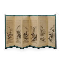 Yasunobu was a leading exponent of the Kano school in the 17th century. He was, among other things, the master of Ogata Korin (1658-1716), the author of section of the painted decoration of Nijo Castle in Edo,
