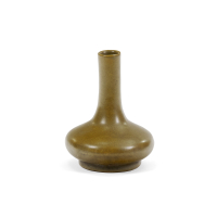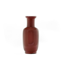 Porcelain with red 'sang de boeuf' glaze, Chinese inscription on the base, hole in the center of the base for lamp mounting.