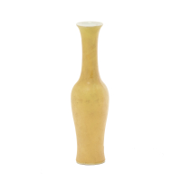 Porcelain with yellow glaze, double concentric circle in cobalt blue to the base.