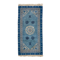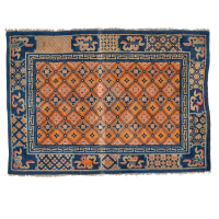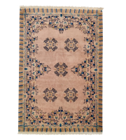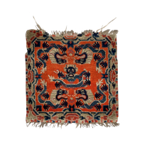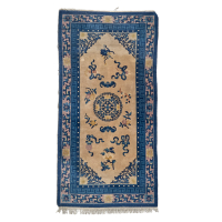 Ochre and blue ground, decoration of stylized dragons and clouds.