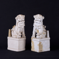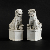 'Blue and white' porcelain decorated with floral motifs, the lid with a Buddhist lion handle.