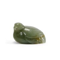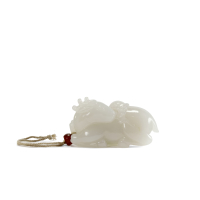 White jade, depicting a crouching deer, with lingzhi mushrooms on its back.