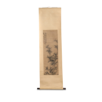 Vertical hanging scroll, print depicting bamboo, inscription and seal at the top left, from a Ming dynasty painting.