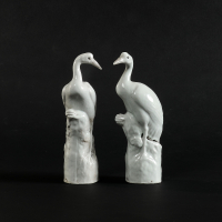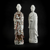 Dehua porcelain ('blanc de chine'), the two deities depicted seated.