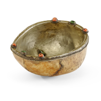 Bone, the interior covered in metal with cabochon inlay semi-precious stones.