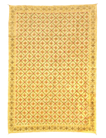 Purple ground with silver thread embroidery of flowering branches and birds, colored tassels.