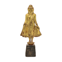 Carved and gilded wood, the standing deity wearing a wide robe that leaves the right shoulder uncovered.