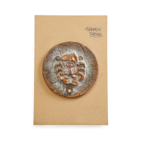 Enameled ceramic on woodboard.