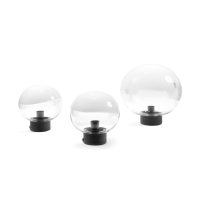 Varnished metal, blown glass.