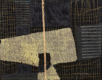 Tempera, coloured pastels and oil pastel on paper applied on canvas.