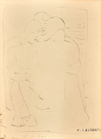 Drawing made on December 26, 1954 on a restaurant placemat. On the reverse, under the artist's signature, are the signatures of the diners, including those of his wife,