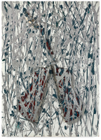 Mixed media on paper applied on canvas.