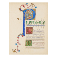 In 12° (132 x 105 mm); [27] carte, protette da velina. Miniature policrome a ogni carta, tra cui numerose iniziali fitomorfe, 3 iniziali istoriate con angeli, un