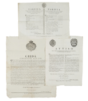 [Parma - Editti]. Corposo lotto di avvisi, editti, proclami ecc. legati al Ducato di Parma, Piacenza e Guastalla. Citiamo tra gli altri Proclama per una nuova tassa di sussidio alla civica tesoreria in materia d'Annona del 1801, Rinnovazione della grida per la dottrina read all