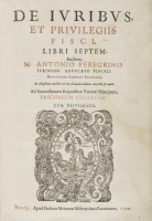 Pellegrini, Marco Antonio. De iuribus et privilegiis Fisci libri septem. Venezia, Paolo Meietti, 1590.