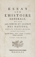 [Voltaire]. Interessante lotto dedicato a Voltaire, con un esemplare con barbe de L'Homme aux quarante écus del 1768 con frontespizio entro cornice figurata e 98 pagine, un esemplare con barbe de Le duc de Foix del 1753, la prima edizione de Mahomet nell'edizione di read all