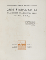 [Zucchero - Borgnino]. Lotto che contiene la prima edizione dei Cenni storico-critici sulle origini dell'industria dello zucchero in Italia di Camillo Borgnino del 1910 in esemplare con la dedica autografa dell'autore a Vittorio Emanuele III, entro legatura in pelle read all